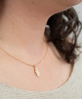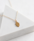 A small and dainty oak leaf hung from a delicate chain.