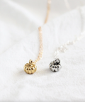 This seasonal accessory features an adorable pumpkin pendant in silver or gold. It is the perfect autumn accessory for your fall collection.