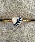 Delicate and charming, these Fern ring features real fern tips preserved in resin against a crisp white or black background. The rings sit on a gold or silver-plated adjustable band that’s thin yet durable for everyday wear.