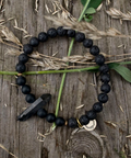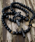 Hen + Bears if you've never benefitted from a little Black Magic eh? The Black Magic Bracelet is hand-beaded on strong, 1mm stretch cord, double knotted and glued with 6mm frosted onyx and lava rock, African brass spacer beads, and one, one-of-a-kind black plated crystal. New this season- available in sizes XS - XXL! Comes with a little vial of our own essential oil blend.