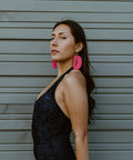 Celebrate the sacred geometry of Northwest Coastal formline art with this acrylic ovoid earring. Available with either crescent or trigon cutout, they are a lightweight option without the lightweight statement.