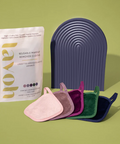 Can't decide your favourite colour? Why not get one of each?! Our assorted 5 Day Mini Set comes with 5 travel sized cloths in Blush, Mauve, Berry, Emerald, and Navy.