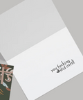 5.5" x 4" folded greeting cards printed on matte paper. Includes an envelope and wrapped in cellophane.