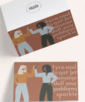 Our Sister Sister Every Day line was designed for situations big, small, and everything in between. Using language and graphics that feel current and relatable with just the right amount of sass, this set is amazing to draw from when needing to encourage a friend, show gratitude, offer congratulations, or just send some good old fashioned quirky-ass snail mail.