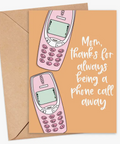 Mom Thank You For Always Being A Phone Call Away - Mother's Day Greeting Card -Greeting Card Finished Size: A2 (5.5" x 4.25")
