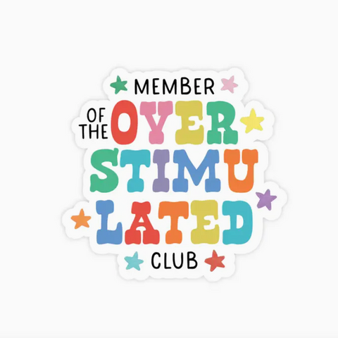 Colorful text sticker with 'Member of the Overstimulated Club' on a white background