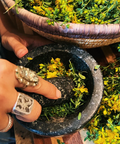 Solar Rising is a blend of two uplifting, mood & nerve supportive Plant allies that help boost mood, and remember joy. The vitality of the Sun. They may also support digestion. This blend continues to offer deep support & Solar vibrations.