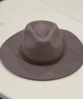 River is a wide, stiff brim fedora constructed of 100% Australian wool felt and trimmed with a genuine suede band.