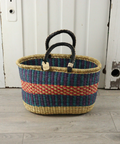 Big Blue MomaThis is a two handled hard walled basket. Hard walled baskets are great for delicate things or fragile items like glass jars, wine bottles. The basket will keep its form while is is being carried. I ams love these for knowing medium to large sized projects in the car. The basket will sit neatly behind the cars seats, or in-between bucket seats in the front.