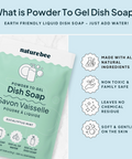 Dissolves to make a beautifully scented 500ml Gel Dish Soap - washing dishes squeaky-clean the eco-friendly way! HERE’S HOW IT WORKS: - Pour the powder contents (24g) into a dish soap container of choice. - Pour in 500-700ml of warm filtered water. 500 ml will be a thicker gel. Adjust water ratio based on your preferences. - Gently Shake or stir for 30 seconds - Leave to thicken and activate for 15-30 minutes. - Happy Cleaning! FEATURES & BENEFITS: - Sustainable - eliminates the need to buy another plastic bottle - Recyclable packaging - Eco-friendly: vegan & biodegradable formula - Dye Free. - Creates a thick, sudsy kitchen dishwashing soap