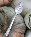 Gorgeous vintage silver flatware hand stamped with cute, witty phrases sure to make you smile. Perfect for gift giving