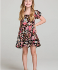 In sweet botanical floral on a black backdrop, this charmer is all old fashioned elegance.