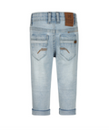 Koko Noko boys' jeans in blue. The jeans have a loose fit, so they are nice and loose for a cool look. The boys' jeans feature a turn-up at the legs.