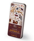 Wild Safari! A wonderful challenging beautifully illustrated 150 pc. puzzle with an array of fascinating African Animals, packaged in a beautiful reusable keepsake tin. These puzzles make for a perfect little extra special gift, party favor or a stocking stuffer. Tucking easily into a backpack, they are also great for travel for kids on the go.