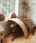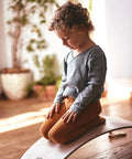Watch your child’s imagination take over as the Kinderboard LITE becomes a seesaw, balancing toy, slide, stepping stool, boat, resting nook and so much more! Originally introduced in Waldorf Early Childhood classrooms, the multi-use Kinderboard LITE supports children’s mental and physical development while also serving as a versatile and sustainable option for explorative free play.