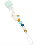 Our Darling baby pacifier clip is a fun way to keep soothers, teething rings, or toys close at hand (and off the floor!). It features differently shaped food-grade silicone beads with a cute charm-style bead and a gem-stone inspired one-piece molded silicone with no screws or metal parts. one. It opens with ease but grips on clothing or blanket tightly for optimum security. Simply loop the baby's pacifier or toy to one end, then fasten the other end to clothing, blankets, car seats, strollers, or diaper bags. Tested regularly at a government-accredited lab to meet and exceed safety standards.