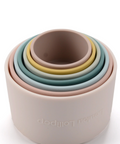 Our silicone nesting and stacking cups are the must-have sensory and educational toys for all ages. Adorned with a fun design on each cup, this set of seven cups is made of 100% food-grade silicone that is soft and gentle, essential from playtime to bath time! For ten months and up.