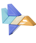 - Includes 6 blocks in 2 shapes: 4 triangular prisms and 2 parallelograms