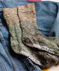 Men's Fresh Pine Camp socks are made with an extra thick yarn to keep you warm. Ribbed for durability and subtly mismatched they are your new cold-weather friend. Designed in Canada, ethically made in Italy.