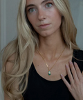 The Mystic necklace features a pendant reminiscent of the Hamsa - a palm-shaped amulet with roots in North Africa that shield the bearer from negative energy.
