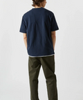 Oles G003 is a knitted shirt crafted from 100% organic cotton for a soft and comfortable quality. The shirt has a regular fit and features crew neck and dropped shoulders. The model is 187 cm tall and wears a size large.
