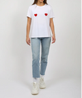 We brought back one of our best-selling pieces! Our limited-edition Double Heart Classic Crew Neck Tee has two red flocked hearts sitting side by side on the chest.