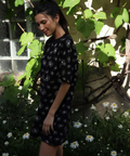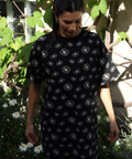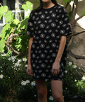 Meet the 90's inspired All Over Daisy Tee Dress in Black with Almond Milk print.