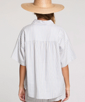 Made with a petite ocean striped fabric, this boxy top exudes luxury and sophistication.
