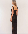 The Amal Dress is draped in a soft, fine mesh. It features a slight, sweetheart neckline, slim waist, and side slit. It is sure to be the life of the party.