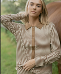 Includes a classic polo shirt with wide leg pants with a drawstring and pockets.