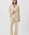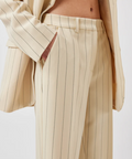 Halliroy is a pair of classic suit pants crafted from recycled polyester, nylon and viscose. The pants have a straight fit and feature classic pants details and they are detailed with pinstripes. The model is 180 cm tall and wears a size 36.