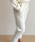 Our latest loungewear line showcases an innovative fabric with a nearly scuba-like texture. This lightweight polyester/spandex blend is incredibly cozy. Known for its peach fuzz softness and wrinkle-resistant nature, it's perfect for a comfortable and snug experience.