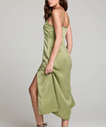 Simple spaghetti straps beautifully frame your shoulders while one leg peeks from the slit skirt of this graceful midi style.