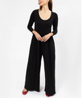 • Long sleeve romper with flowy wide pant leg