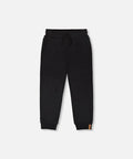 The French terry sweatpants with cross seams in black are a comfy everyday staple for boys. Designed with slant side pockets, ribbed fitted cuffs, and an elastic waistband with drawstrings, these joggers also feature a cross seam detail across the leg for a stylish finish. Made from a soft cotton-polyester blend, they’re perfect for moving, playing, and relaxing in style, part of the cool “B.O.Y.S.” collection.
