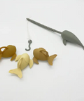 At PVB Our Silicone Fishing Toy Set is designed with your little fisherman in Mind! Crafted for families who love the outdoors and fishing! Our fishing toy is both good for the bath and for everyday play! Both visually appealing and educational. Our set includes a narwhal fishing rod and three colorful fish. Made from high-quality silicone. Benefits include enhancing coordination and gross motor skills, concentration and language and communication. Age Recommended: 3y+ Dimensions: Pole 16 inches x 2 inches x 1.25 inches Fish 2.75 inches x 2.38 inches x 2 inches Designed in Canada, Made Ethically in China.