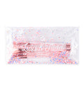 Perfectly sized for applying our Eco Bio Glitter to the face, body, or hair, these brushes are as pretty as they are practical. The set comes in a clear pouch that’s just as magical—filled with floating pink and silver reflective glitter that shimmers and moves as you do. The snap-button pouch on the back keeps everything secure while adding a dose of glam on the go.