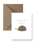 - Sized A2, 4.25 x 5.5 inches folded and comes with a matching Kraft Envelope