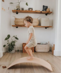 Watch your child’s imagination take over as the Kinderboard becomes a seesaw, balancing toy, slide, stepping stool, boat, resting nook and so much more! Originally introduced in Waldorf Early Childhood classrooms, the multi-use Kinderboard supports children’s mental and physical development while also serving as a versatile and sustainable option for explorative free play.