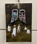 Our original Love Bird design intentionally features two different wings: an Eagle and a Raven to represent each of Vina's Heiltsuk great-grandparents and their respective clans. This design is in honor of their arranged-marriage turned love-story. Take part in a story of love, tradition, and craftsmanship with these graceful Love Bird earrings.