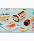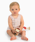 The little cat mirror is good for daily neck strengthening during tummy time. A pretty rolling kitten rattle with 2 wooden balls makes a pleasing sound when shaken and will help to strengthen fine motor skills.