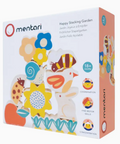 This wooden stacker toy includes a row of carrots, a sunflower, flowers, a bee, a ladybird, a snail, an apple, a bird and a rabbit. All comes in a printed drawstring bag. All pieces are made from sustainable rubber wood. All Colored with a water-stain paint.