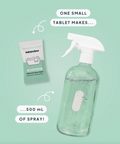 KIT INCLUDES: 1 500ml glass spray bottle - 1 Concentrated Bathroom Cleaner Refill Tablet