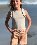 Who doesn't love a great pair of denim shorts!  The best news is that the Kinsley comes in 3 different colors: pink, grey, and Navy!  Even better; they pair perfectly with all the tees and tank in our Spring and Summer line!!