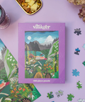 Escape to the mountains without leaving home. Take a peaceful hike through through a stunning meadow at the foothills of the Rocky Mountains. Wildlife, mountain vistas, flowers and even a lakeside log cabin appear as you piece together this beautiful illustrated puzzle by artist, Anja Jane from Bowen Island, BC.