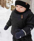 Introducing our expertly designed kids winter mittens, crafted to withstand the chill of the season. These mittens ensure your child’s hands stay warm with their snug, insulated build. Featuring a sleek reflective detail, they capture and retain warmth, offering greater comfort than traditional mittens. With insulation effective down to -30°C and a water-resistant finish, your child can play outdoors safely for hours. Designed in Canada by parents who understand the importance of safety and warmth, these mittens are a reliable choice for winter adventures. * Sytex insulation for extreme warmth * Water-resistant with a reflective membrane * Soft microfleece lining for added comfort * Convenient side zip closure * Elastic wrists and Velcro tab for a secure fit * Durable polyurethane palms and thumbs Hand wash in cold water